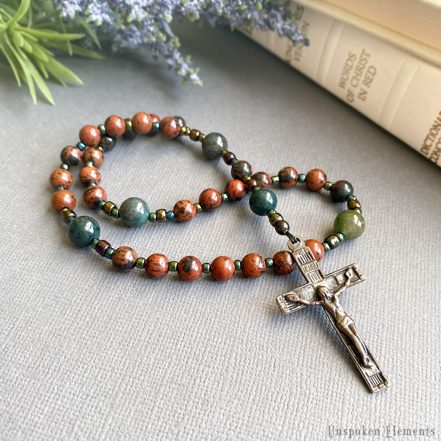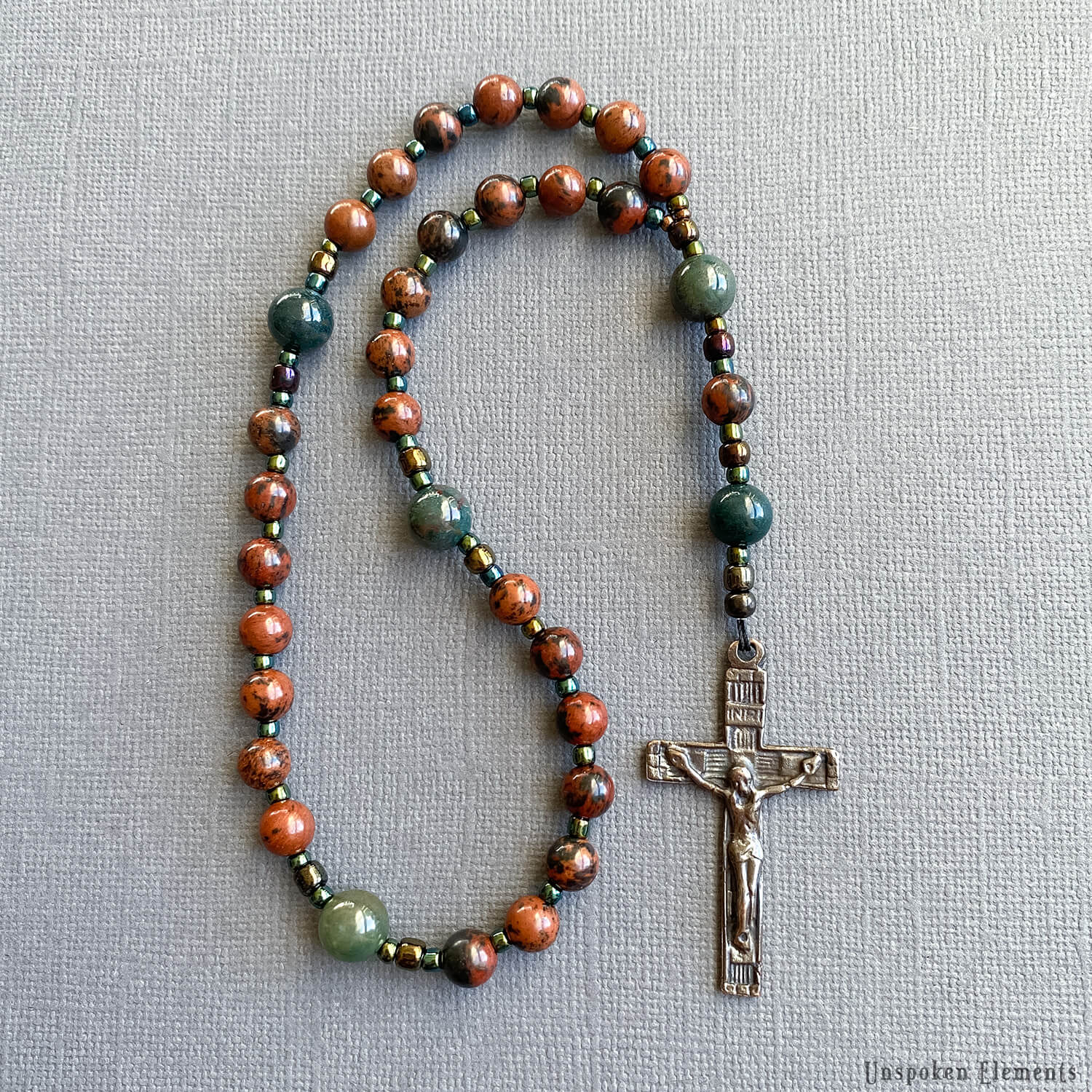 Grounded in the strength of Mahogany Obsidian and the vitality of Bloodstone, these Anglican prayer beads serve as a tangible reminder to choose faith over fear. At its core, faith is trust in God’s unseen promises. True courage arises when we believe in those promises, even when the path ahead is uncertain.